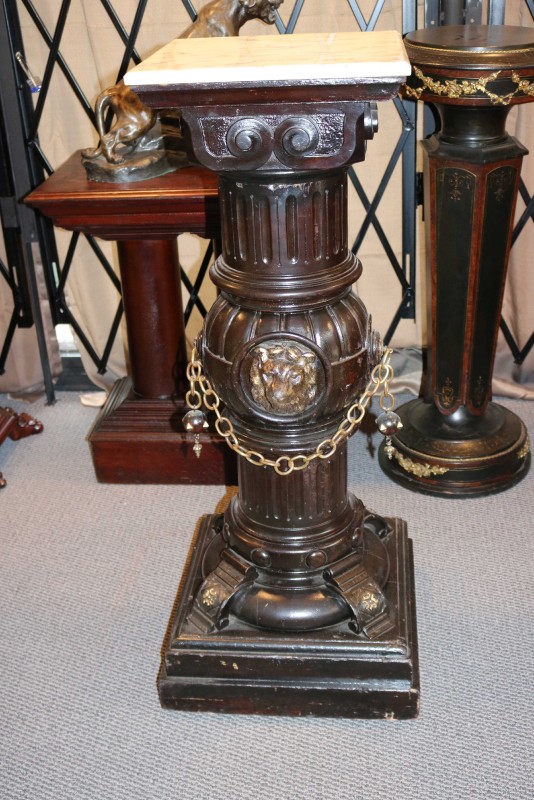 Lion Chunky Pedestal - Ebonized - Marble Top