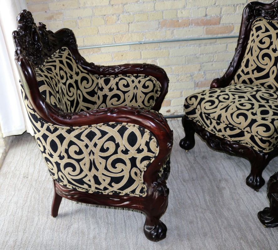 Karpen (Chicago IL.) Mahogany Carved Couch and Chair