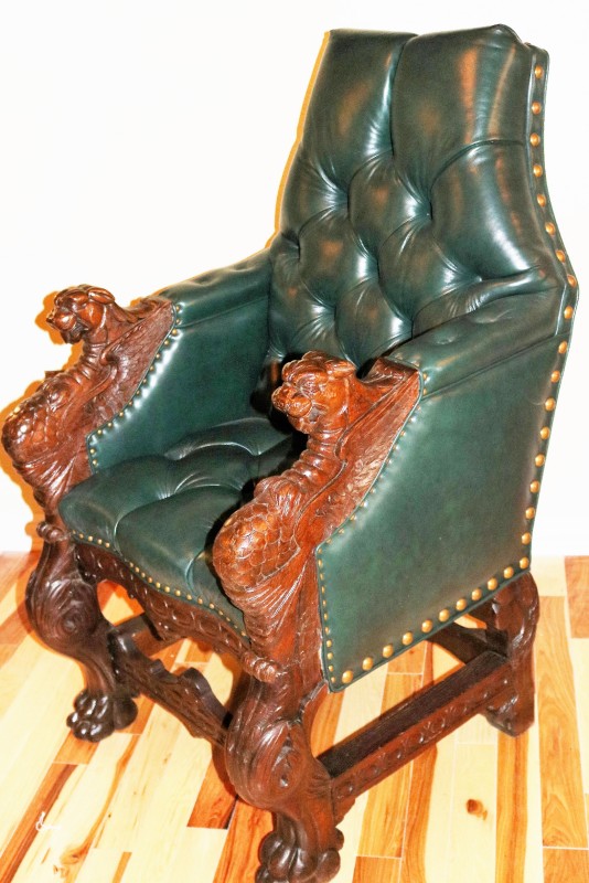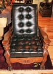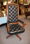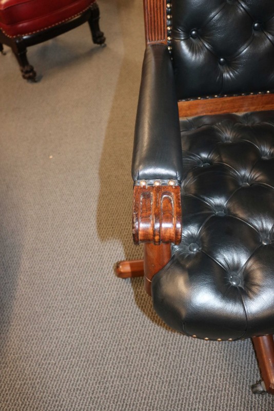 Mahogany Desk Chair Black Leather Buttoned & Tufted