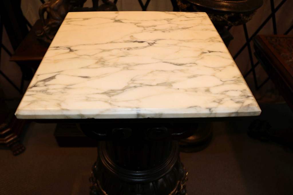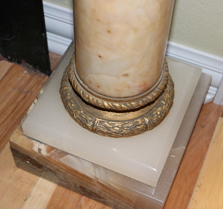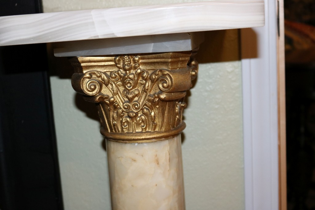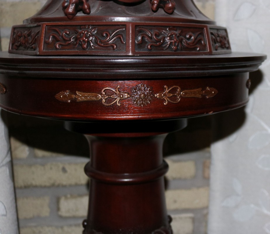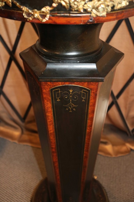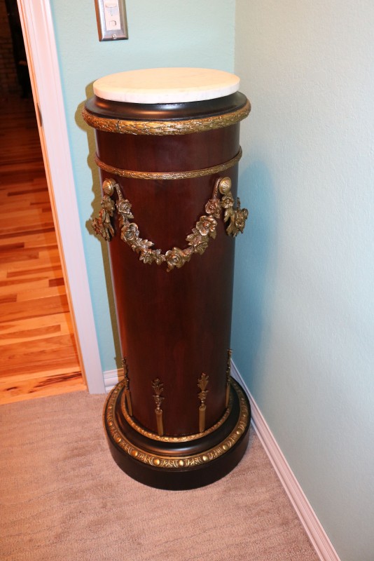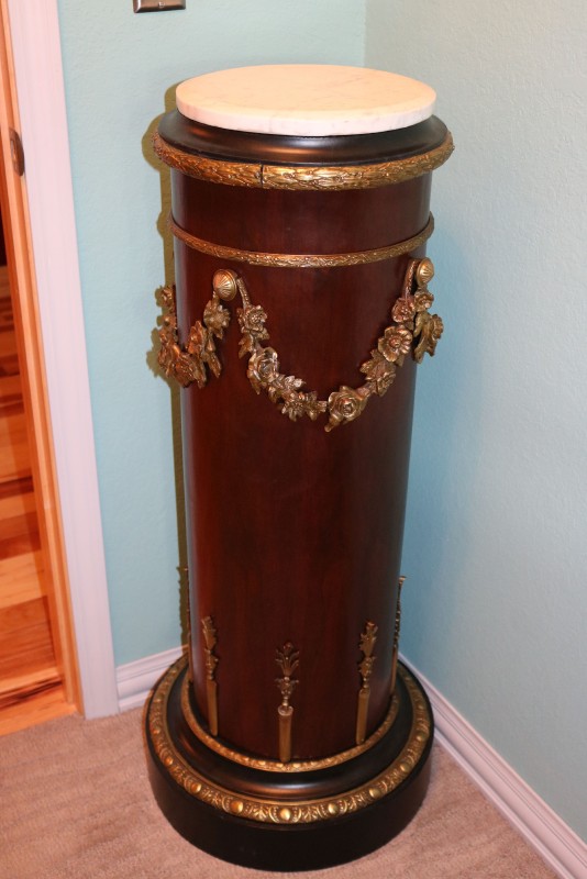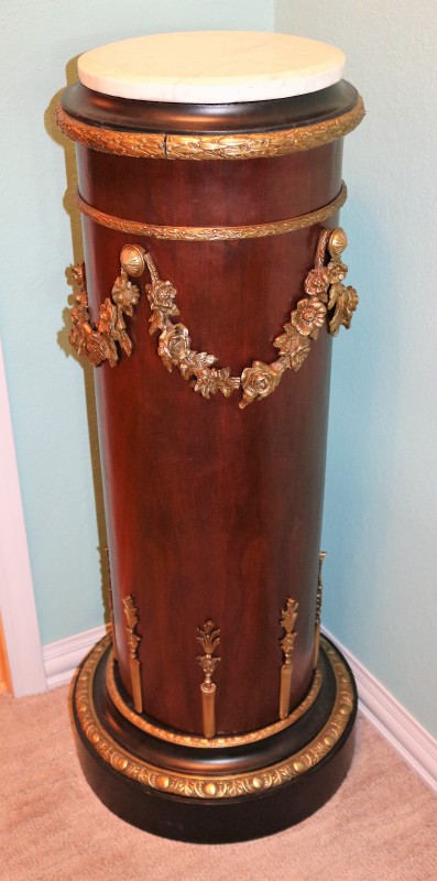Mahogany Pedestal with gilt bronze ornamentation and white marble top