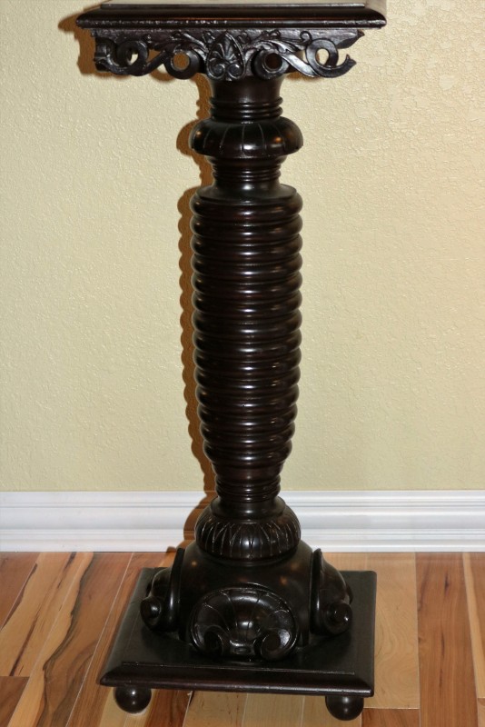 For more information about Roman Scroll Pedistal call 9th Street Antiques.