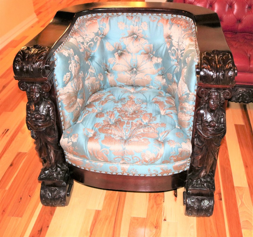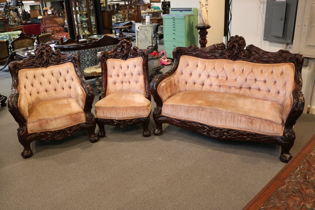 Karpen (Chicago IL.) Mahogany Carved Couch and Chair