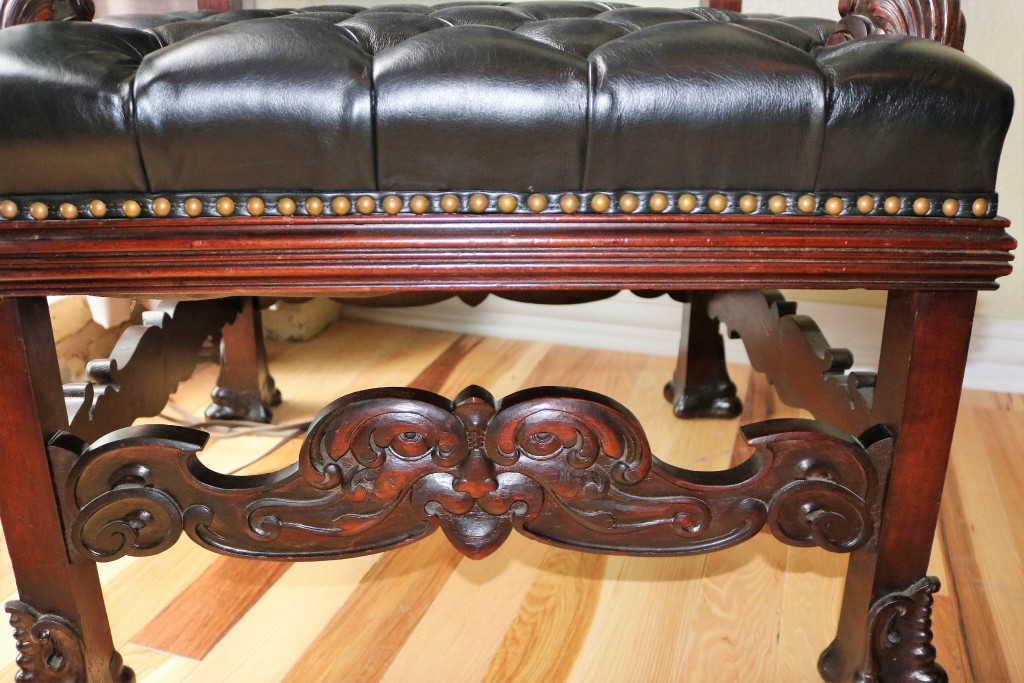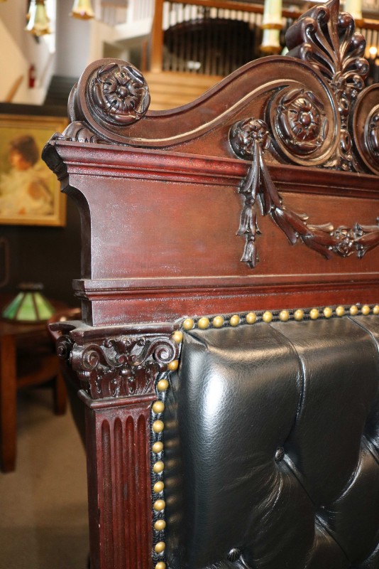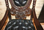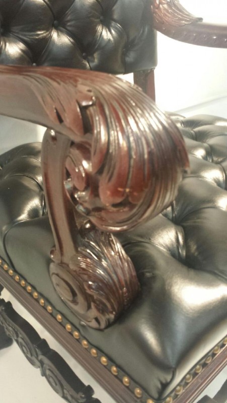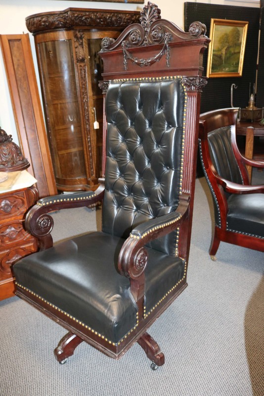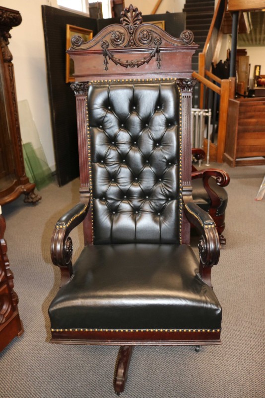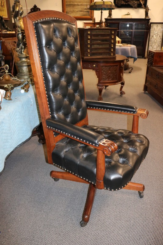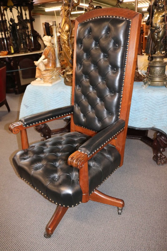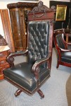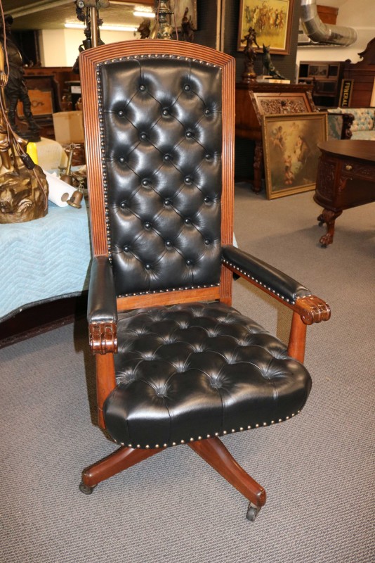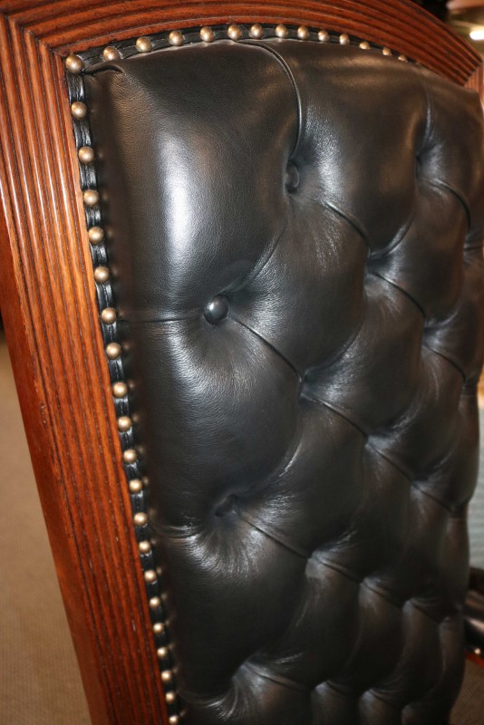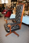 Mahogany Desk Chair Black Leather Buttoned & Tufted