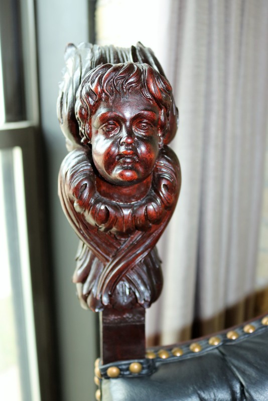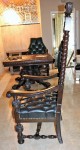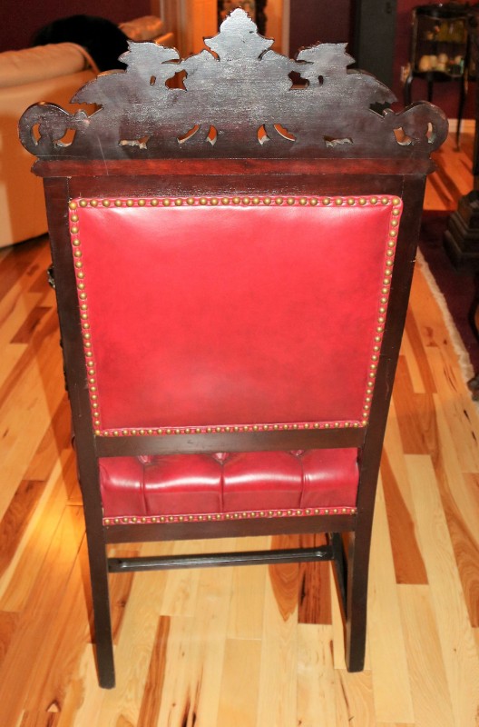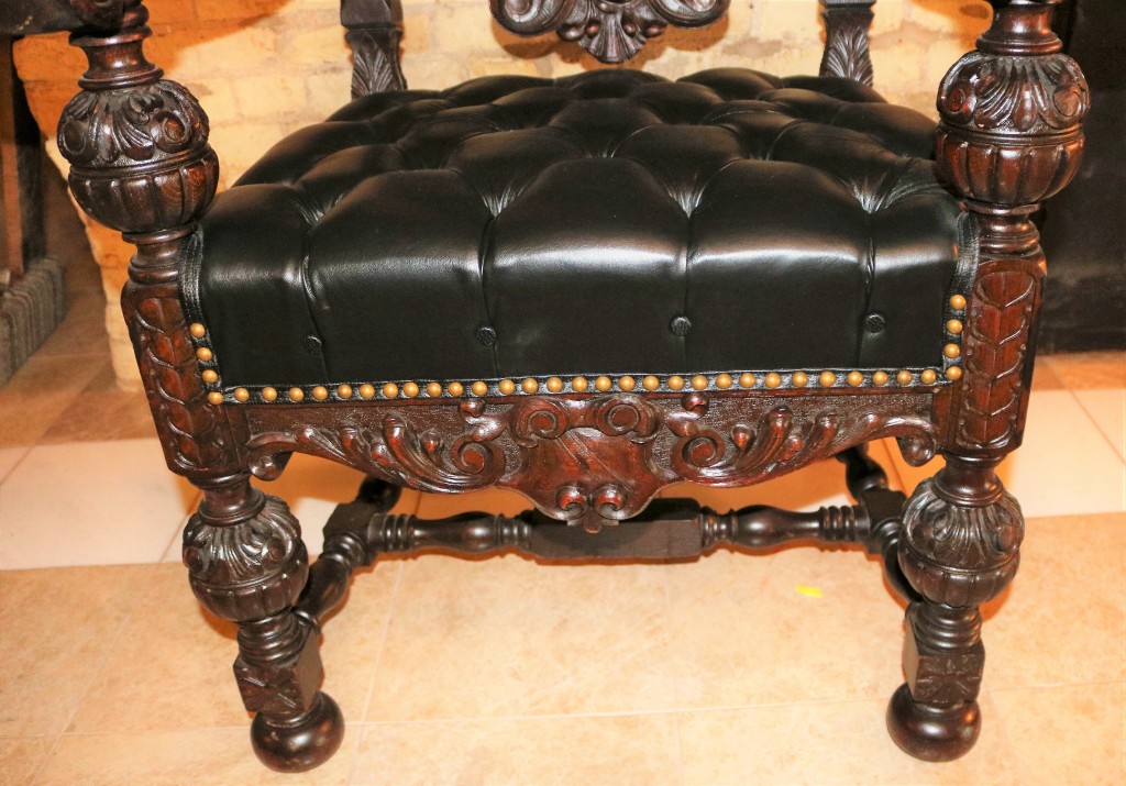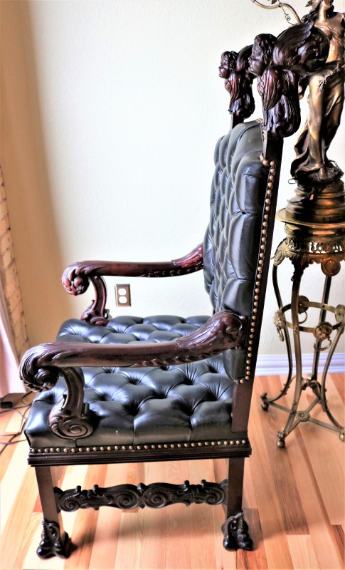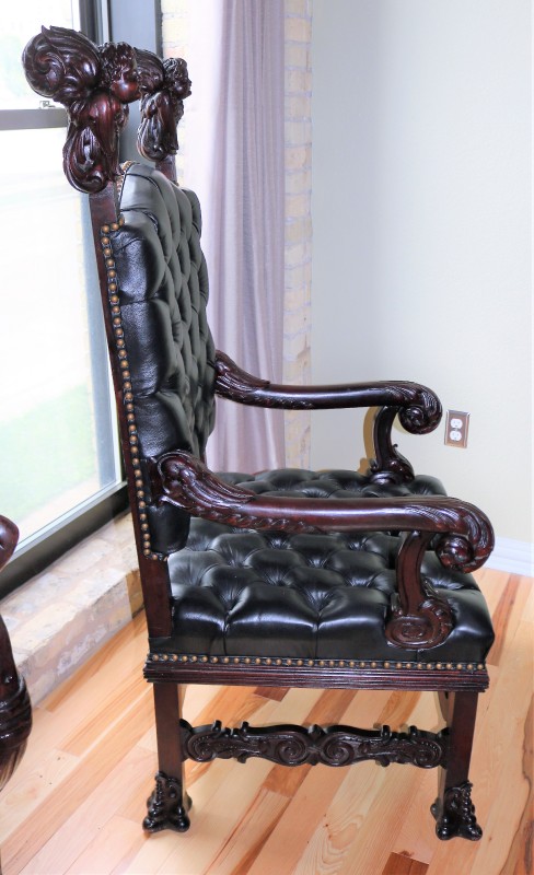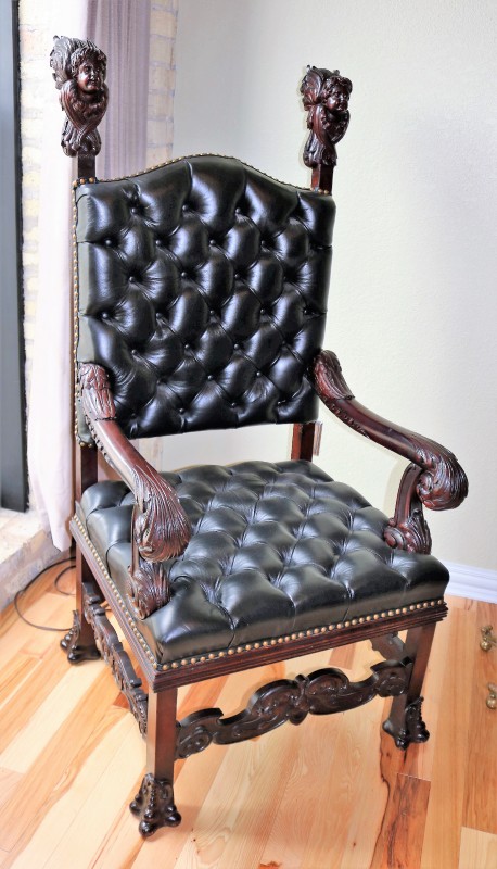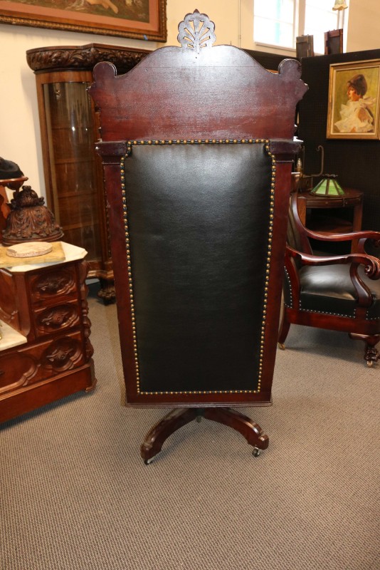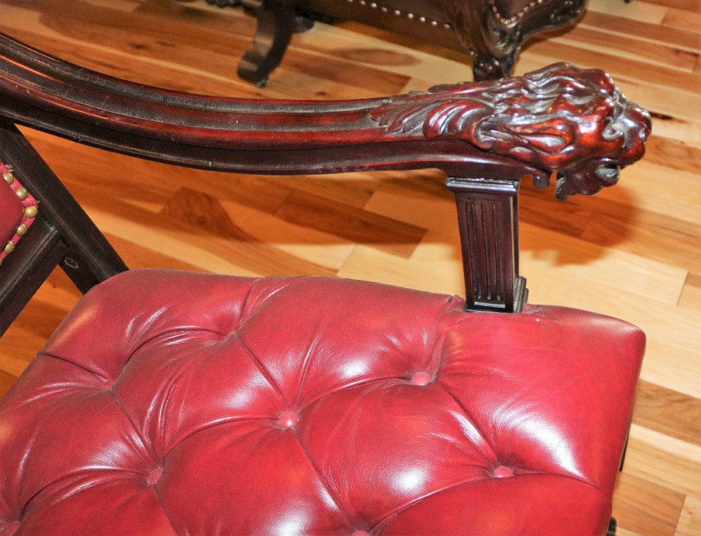 Mahogany Desk Chair Black Leather Buttoned & Tufted