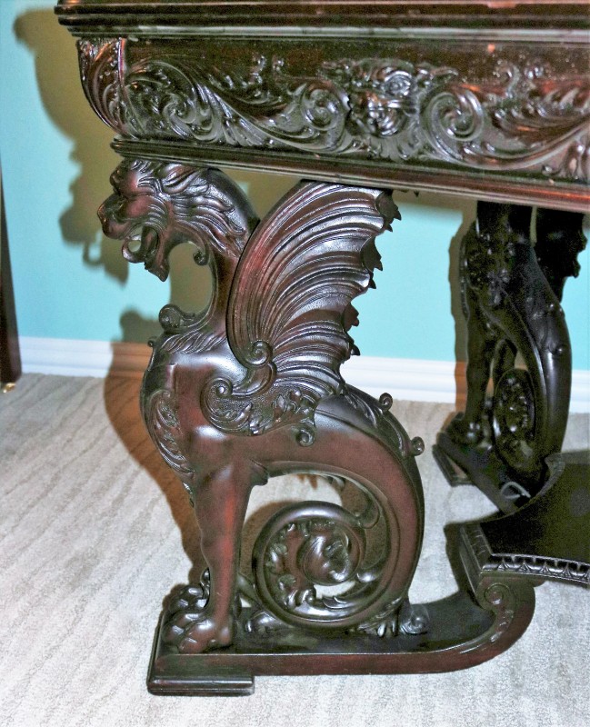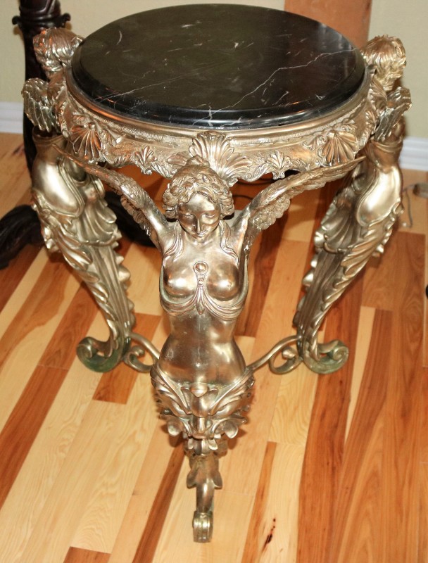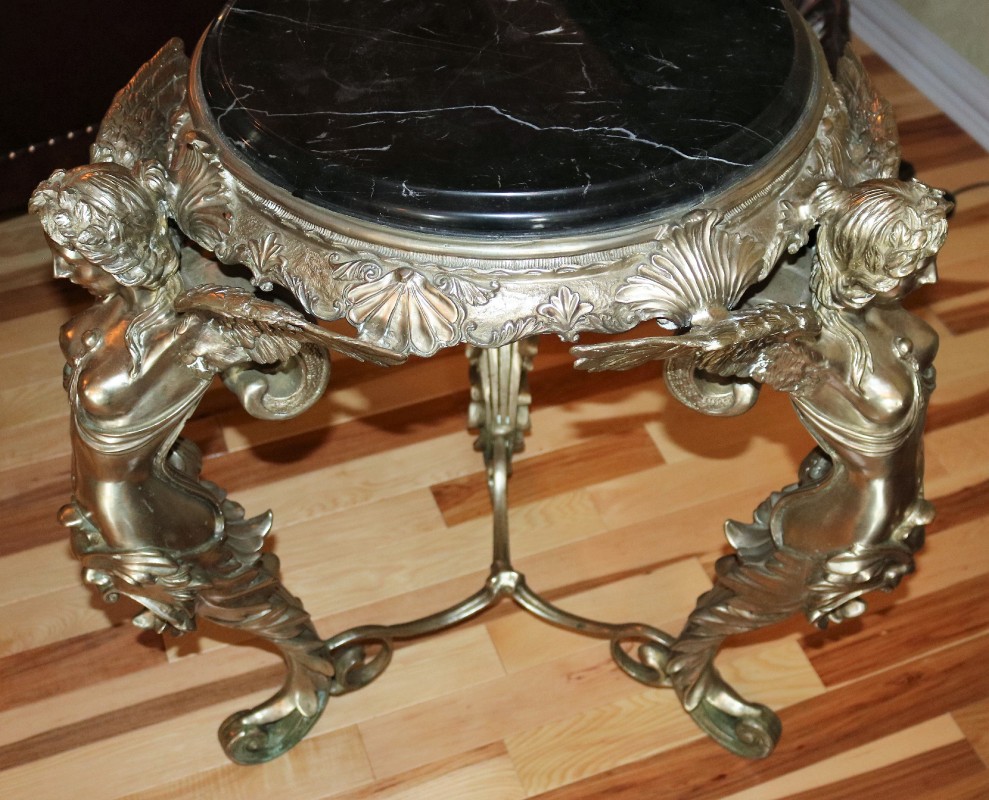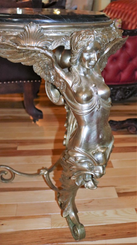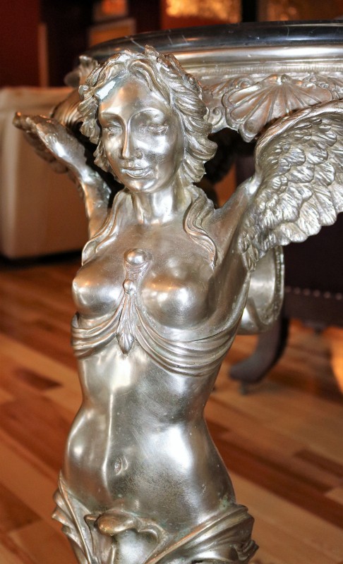 Silver over Bronze / Winged Women Parlor Table with Marble top